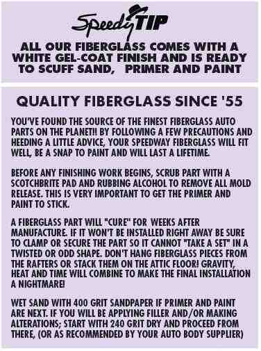 These Speedway Fiberglass front fenders for your 1926-1927 Ford Model 'T' have a smooth gelcoat finish. They feature all the stock body lines and are molded from original stock patterns.