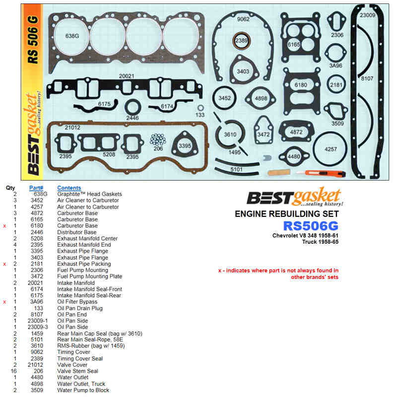 Best Gasket RS506G 1958-61 Chevy 348/409 Gasket Set