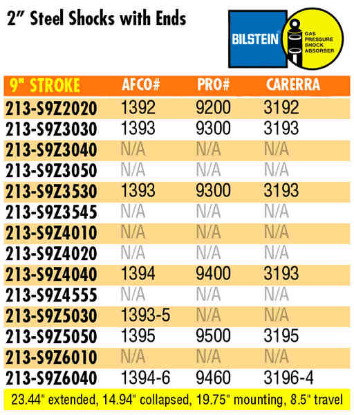 Bilstein F4-B46-0207-ZE Steel 2 Inch Shock 9 Inch Stroke, Reb 3/Comp 5