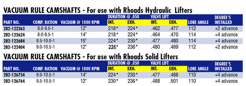 There are many things that effect vacuum. Camshaft lobe separation, lifter style, intake manifold, piston rings, compression ratio and overall valve and engine condition. Due to many and varied engine combinations, Speedway Motors offers no warranty on camshaft and or lifters for either performance, vacuum or longevity.