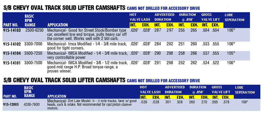 Small Block Chevy Oval Track Solid Lifter Cam & Lifters 4200-7600