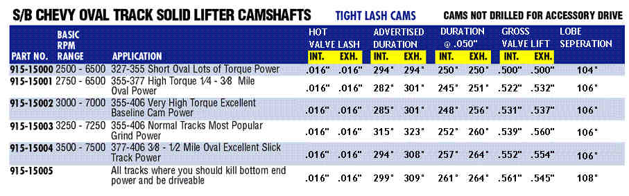 - (1) SBC Solid Lifter Tight Lash Camshaft